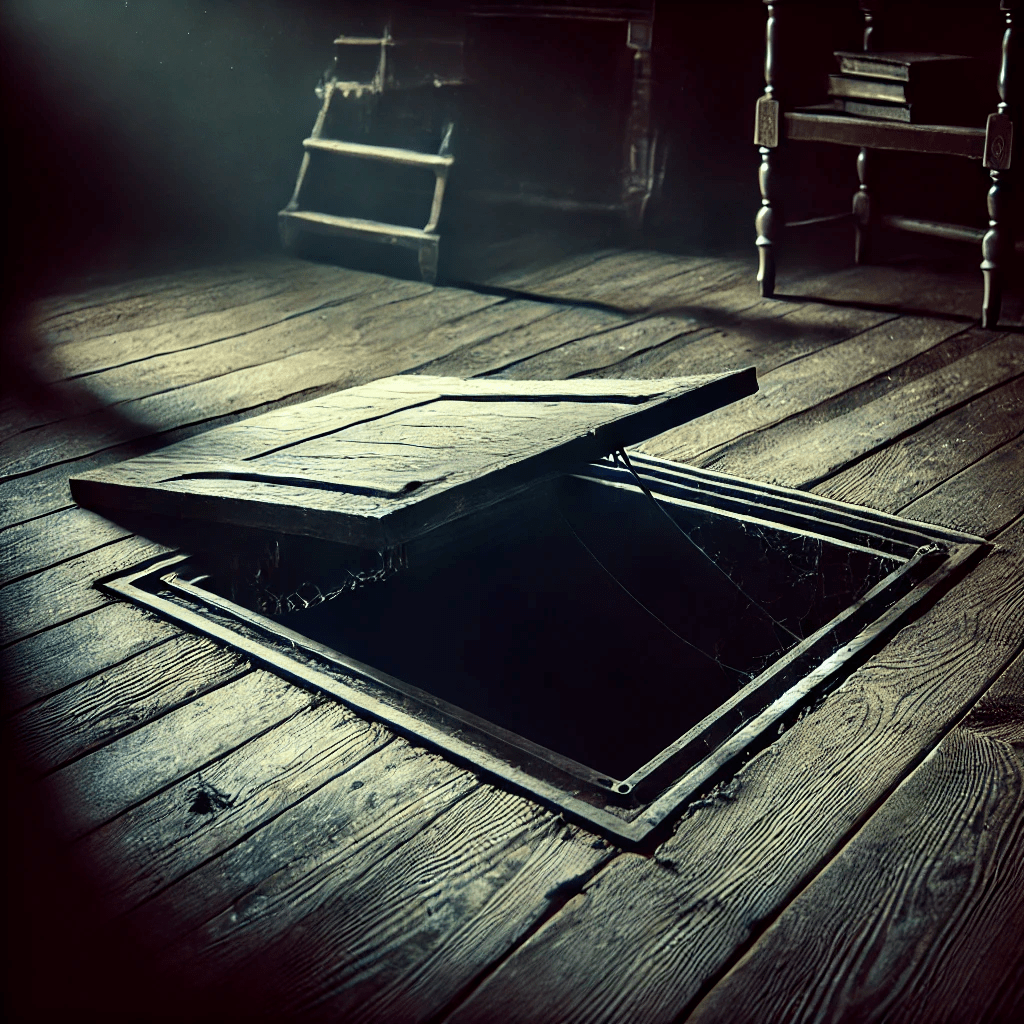 Pero lo que más le inquietaba era la puerta en el suelo del sótano.