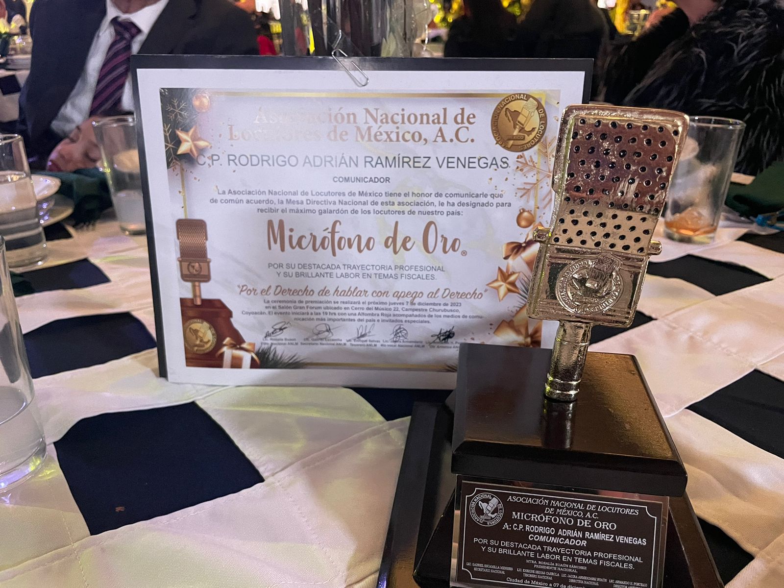 Me llena de orgullo y alegría anunciar que fui sido nominado y reconocido con el Micrófono de Oro 2023 por la Asociación Nacional de Locutores de México. Este galardón representa un reconocimiento a la pasión y el compromiso.